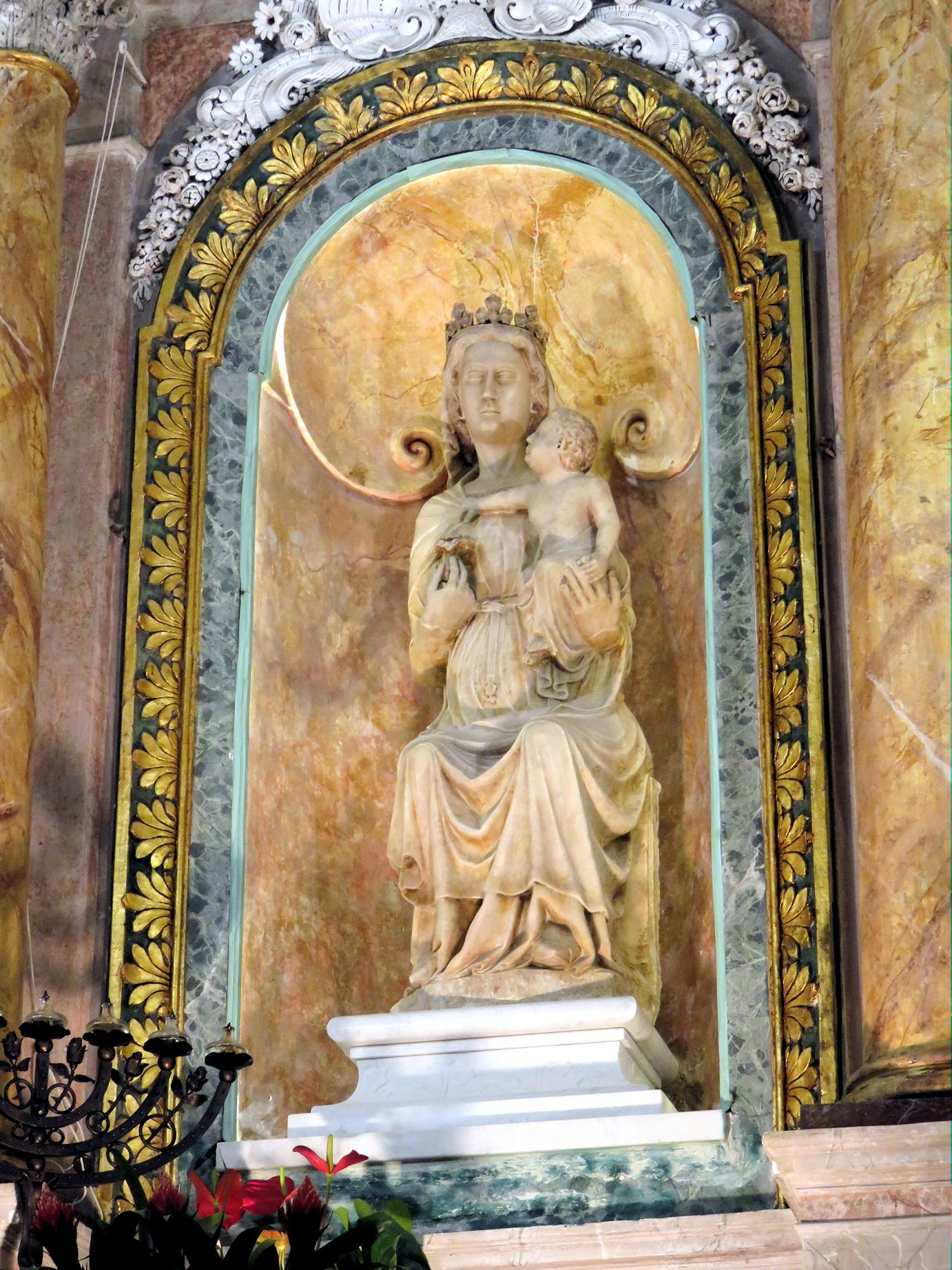 Il patrimonio artistico che arricchiva l’interno è stato in parte danneggiato e in parte trafugato a seguito del terremoto del 1980; tra questi va comunque rilevato il capolavoro custodito nel tempio ossia la scultura marmorea della Madonna della Manna, realizzata nel XIII secolo da Nicola da Monteforte; l’importante opera scultorea, oggetto di interessanti studi, è custodita in una nicchia alle spalle dell’altare maggiore. La tradizione vuole che in ricordo al miracolo compiuto dalla Madonna che trasudò goccioline di liquido celeste, il volto della Vergine viene lavato ogni anno nel mese di agosto.