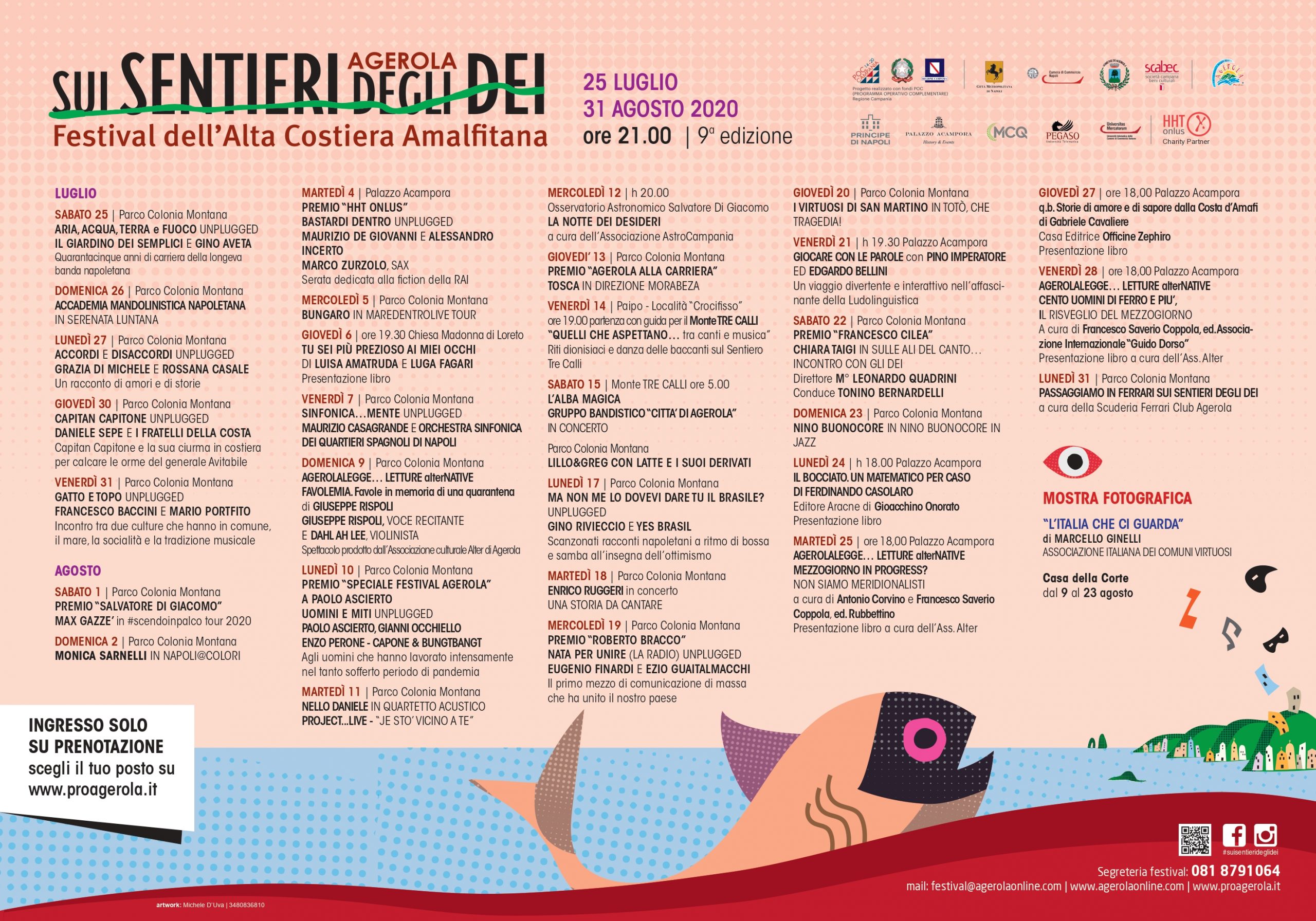 FESTIVAL AGEROLA SUI SENTIERI DEGLI DEI 2020 Ingrandisci immagine FESTIVAL AGEROLA SUI SENTIERI DEGLI DEI 2020Trenta appuntamenti con grandi ospiti e tante proposte per la musica, il teatro, la letteratura in programma dal 25 luglio al 31 agosto 2020. Ingresso libero, fino ad esaurimento posti a sedere. iloveagerola2024-04-09T14:35:17+02:00