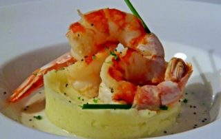 TORTINO DI PATATE E GAMBERI CON FONDUTA DI PROVOLONE DEL MONACO AGEROLESE